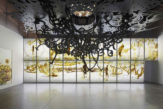 The Weight of the Sky ,a vast powdercoated aluminum, stainless steel, gypsum, and vinyl wall installation will be included in an exhibition at the prestigious Staatliche Kunstsammlungen Dresden later this year as part of an exhibition of works from the Hoffman Collection, Berlin, together with the painting A Glorious Martyrdom Awaits Us All at the Hands of Our Tender and Merciful God. Entitled �To the Milky Way by Bicycle,� the show will be on view from June 20 � September 20, 2009.