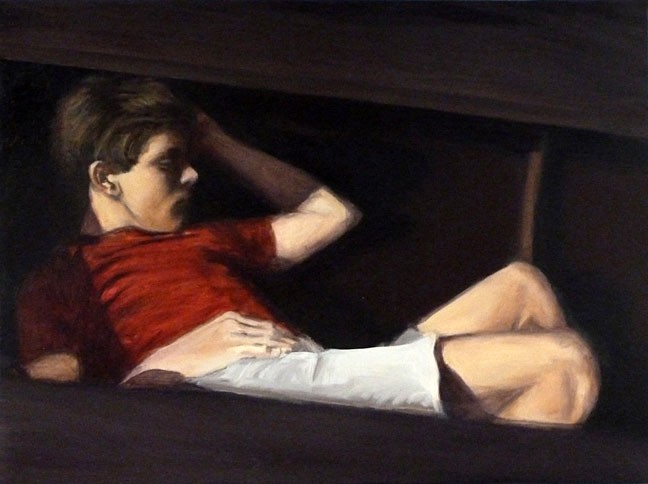 Abel Baker Gutierrez was born in California and earned his BA and MFA at the California Institute of the Arts in Valencia, CA. His works explore a world of post-teen angst, development of sexual identity, and representations of masculinity in adolescence. Taking inspiration from rock music's aesthetic trends to scout culture to old masters paintings, Gutierrez utilizes a diverse range of materials to create paintings and installations which reflect our obsession with youth culture and issues of “growing up”.