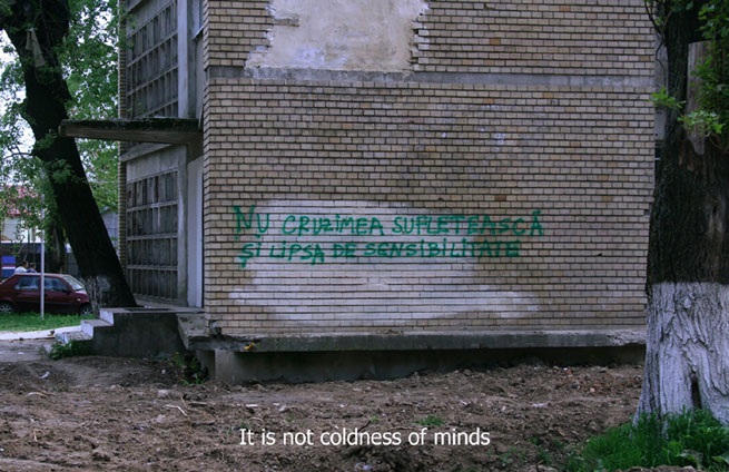 Artists possessing the experience of exile, of the shift in political regimes, social transitions, Stefan Constantinescu, Andrea Faciu and Ciprian Muresan relate in their work to the theatricalisation of social practices, the encrypted “dramaturgy” of the public realm, and the complex order of individual destiny.