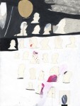 ink, colored pencil, acrylic, collaged paper and graphite on paper