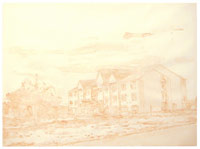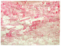 | right top to bottom: Rocky Mountain Log Home – pine sap on paper 2003 30'' x 22 1/4'' 76×56.5cm Hogar [Roswell; NM] – Black Cat Triple Fast Action House Blessing on paper 2004 44'' x 33'' 112x84cm How we Live in this World and what Chance we Shall have in the next we know Not – plaster weld on paper 2004 25 1/2'' x 18 3/4'' 65x48cm | ||||||||