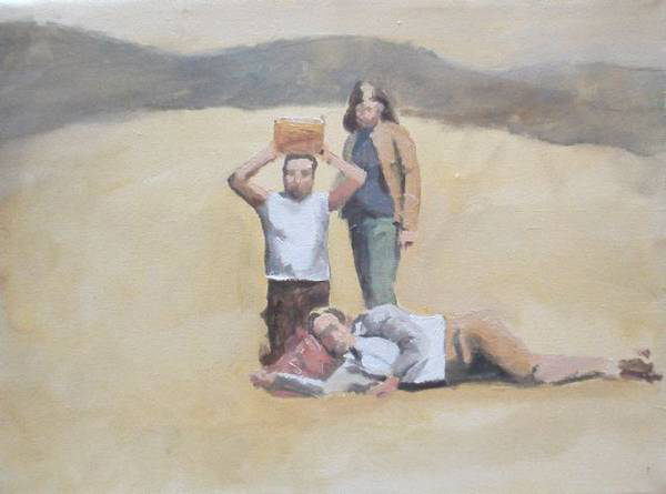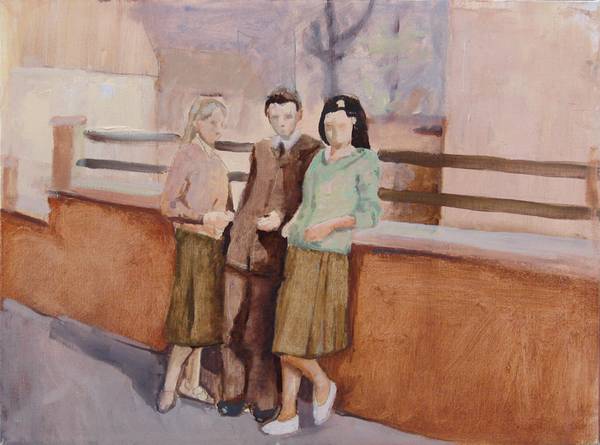 First (and foremost?), his works represent honest, feverish and successful attempts to build up beautiful –in the most primarily aesthetical meaning of the word– painterly images. Then, still on a basic level, they can be easily perceived and comprehended as visual transcription of episodes and of a certain kind of atmosphere which shaped (and, so to say, flavored) the artist’s own school years and adolescence. Furthermore though, they are recollections, viewed through the eyes of a child growing up at that time and through the somewhat blurring lens of appropriated, non-artistic pictures, about a period in the recent history of Romania, the contrasting, strangely dynamic and fascinating years of the decay of an absurd communist political system and the rise of a rather incoherent Romanian capitalism.