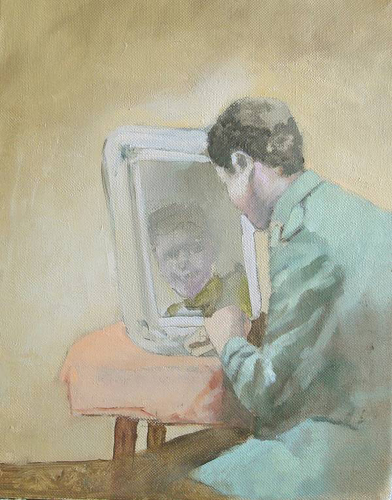 Melting together an exquisite painterly technique (without indulging himself, still, in technical meaningless bravadoes), a photographic based and melancholy generating imagery, a gentle feeling of sympathy the artist obviously feels for his rather humble and banal subjects, his works on display at the Mie Lefever Gallery appear semantically stratified, multilayered. Thus, they are offering the viewer at least four levels of reference and meaning, which got more and more accurately and poignantly mastered by the Cluj based painter in the last years.