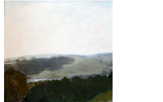 Hoffmann's work celebrates the supernatural; glazed layers of distance and foreground are blurred and redefined by a visionary's naked quest for the truth. Hoffmann unabashedly painted many of these bucolic scenes from a hyper-urban studio at Hunter College in Hell�s Kitchen, where he has recently concluded the graduate program. He is a native Pennsylvanian, which in part might explain the sun-bleached, rural palette and luminous wide-open spaces; but that isn't enough to explain his approach. Hoffmann's choice of landscape as subject is actually quite radical; non-trendy; fraught with levels of projection and meaning, ghosts and epiphanies take root in undulating, sensuous horizons, ridges, lakes, hills and valleys. A lot takes place in these seemingly benign pastorals; which in fact are more political than self-proclaimed