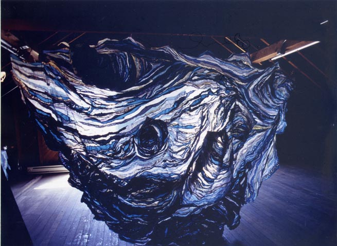 Foliage�EHeart in 1998, the technique procedure involved the wire, fabric and wood stain, I use them in the series of Clothes of Consciousness to extend not only the forming materials but also the idea unfinished, even more to imply its simultaneousness between structure and destruction. Later, the following work I finished is all inspired by an organic form in Nature, such as Foliage�EHeart no.2, California Zephyr, and Tumbleweed, etc.