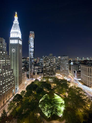 Electronic artist, develops large-scale interactive installations in public space, usually deploying new technologies and custom-made physical interfaces. Using robotics, projections, sound, internet and cell-phone links, sensors and other devices, his installations aim to provide "temporary antimonuments for alien agency".