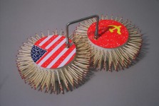Tiny units of energy which can save a life or kill, matches reflect both the nurturing and the destructive sides of human nature. - IMAGE DESRIPTION : 1. - �Nabokov's Matches # 5�, Detail, matches, ink on paper, 40 x 60 in, 2003. 2. - �cold/war/baby #1�, matches, grapite, paper on bolt, 8 x 8 x 30 in, 2004.