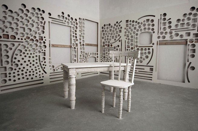 Through the process of de-construction and re-constitution, I find meaning in the objects, architecture and the visual culture that surrounds me. Beyond the context and appearance of the world I attempt to develop new meanings, nurturing relationships between the viewer/user and the object or environments that we encounter. My efforts amount to a playful and creative critique of the way we experience space and the items that inhabit them. Whether those inhabitants be inanimate objects or ourselves as the viewer I carefully consider each as an integral part of an experience, causing actions and reactions through their proximity to my work.