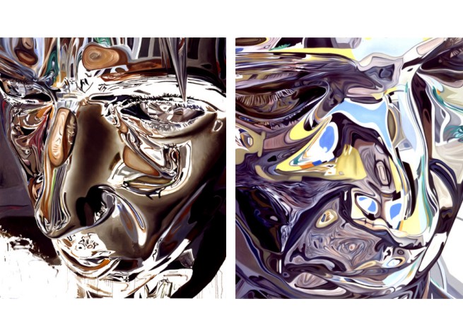 An artificial extract from reality is copied whose more or less abstract structures and processes are imitated and woven into something new, the object depicted. In order to best transfer or transform the seductive and polished aesthetics of shaped glass, metal and other materials and objects into the next medium, the picture, Jung uses photos, printed media and household utensils as models.