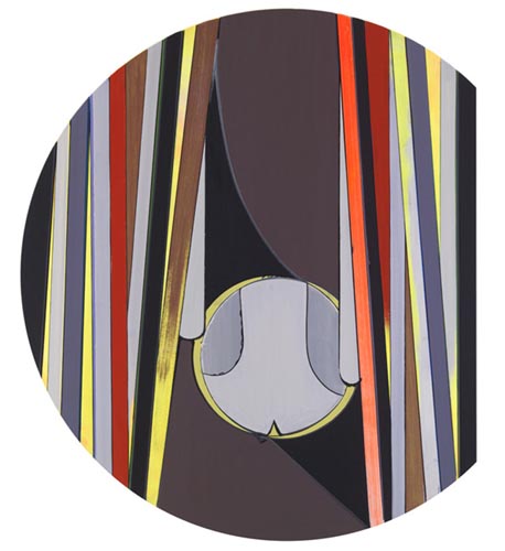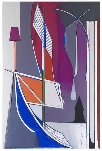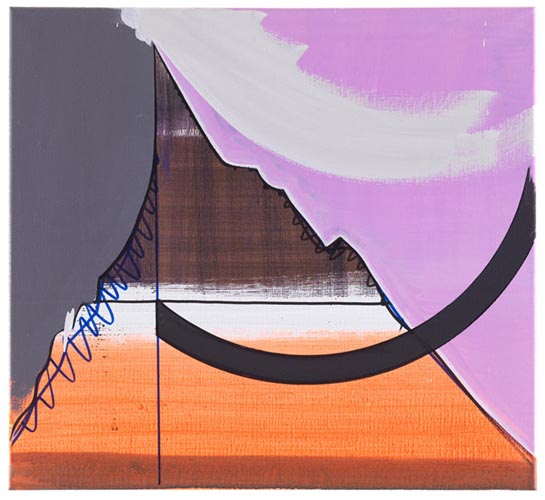 In the contrasting layers of bold and murky colors that slice his canvases, and the pleated folds of his sculptures, Scheibitz references images drawn from our collective visual culture and distilled down to their most elemental formal properties. Through these allusions, Scheibitz explores notions of perception and challenges our facilities and limitations in deciphering given information and the wider world around us. Recognition does come in flashes�arrows, curtains, screens, and letters appear in the works�but what these recognizable elements signify is intentionally open and unclear. The fleeting glimpses of meaning disappear almost as soon as they arrive, to be replaced with a more literal and authentic experience of visual form as the delicate intersection of texture, shape and color. This slippage between symbol and significance is fertile ground for Scheibitz and this generative uncertainty exists in each work, provoking and stimulating the viewer.
