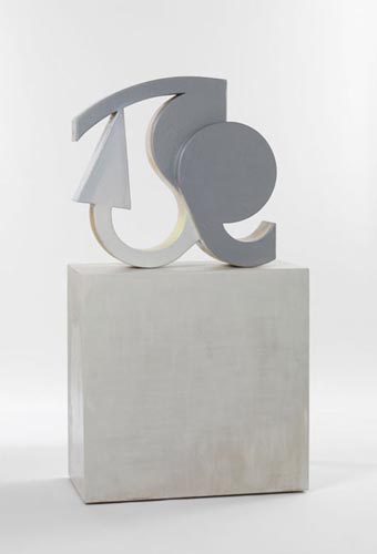 Scheibitz�s non-heirarchical approach to dimensionality is indicative of his interest in exploring how space is understood. In past bodies of work cartographic plans, diagrams and methods of representing landscapes have been of great importance. The title of the current exhibition, Missing Link in Delphi, continues this investigation by referencing Delphi, a city that in Greek mythology was seen as the seat of the world and the center of the universe. Referencing a specific geographic location, particularly one of such classical importance, orients the viewer to the work, which becomes a kind of landscape in itself, with paintings as vistas and sculpture as topography. The combination of this reference to Delphi, with the term 'missing link,' which refers to Darwin�s theory of evolution and the 'transitional forms' of life between one evolutionary phase and the next, explores and combines dueling spiritual and scientific perspectives. The title of the show, and of each piece, adds a linguistic layer to Scheibitz�s formal and compositional puzzle.