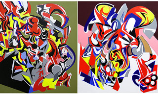 "Crush You" 2007 39 x 35 inches, acrylic on canvas. "What Would Nothing Be?" 2007 37 x 33 inches, acrylic on canvas.