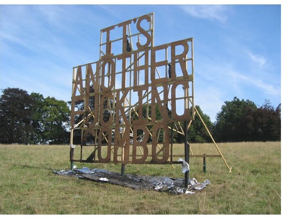 Images from top: Tom Ellis It's Another Fucking Combo, 2006 outdoor installation Tom Ellis I Fucked Up My Last Painting, 2006 acrylic on canvas Tom Ellis So You Made This Painting Some Time Ago, 2006 acrylic on canvas Tom Ellis Good Morning Veronica, 2006 outdoor installation Images: Courtesy of Freight + Volume, New York | Ellis seeks to question the accepted wisdom that only an artist�s �successful� output should make its way from the studio to the gallery. For the exhibition, Ellis will install the site-specific sculpture, Sweet F.A. in the gallery�s front window - an object in which the tension between the aggressive meaning(lessness) of the text and the structure that supports it becomes the content of the work. In the main gallery, the artist will present two different series of deconstructivist paintings. Both bodies of work serve as a journalistic look into the artist�s mind and his take on the art world, and its institutions as a whole. These works, with such titles as Nothing, Fuck All, Nada and I Fucked up my Last Painting are paintings presented in their barest sense, stripped down raw, reduced to a confrontation between an incipient nihilism and human will.