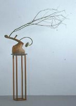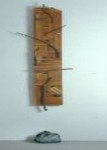… Like traditional round sculptures, works of such a nature usually concentrate on appearance, changes in the ‘characteristics of every aspect’ and the transformation of 3-D light and shadow effects. As a result these sculptures were placed in the center of the show, enabling viewers to scrutinize all round so that all messages conveyed would be received for interpretation and evaluations of the work. In term of aesthetic styling one can easily recognize the ‘down to earth’ character inherent to these works because the elements of them show the closeness to worldly things. To viewers, segments of wooden furniture, stones, metal wires used in industry and man-made wooden blocks may be no more than common objects with a different touch. Through Tsai Ken’s hands however, and his innovation, they have metamorphosed into elegant forms. These works surely display the artist’s habit of cherishing things and objects. It also shows his attempt to integrate life with art. If his initial strategy is to integrate art with life, the key point seems not how he should combine these ordinary objects but how can he rectify the attitude of isolated pride which has for so long prevailed in art and bring to it a human touch?