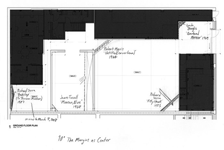 | 90 Degrees THE MARGINS AS CENTER Lynda Benglis, Robert Morris, Richard Serra, James Turrell December 12, 2007 - January 24, 2008 Richard Serra's "Backstop" (To Thurman Muson), 1987 will remain on view through March 8, 2008 It is in its restriction, spatial limitations, and marginalization that the corner has come to serve as a significant site of creative production. It is the terminus of two walls and the site where floor and ceiling end. It is the furthest point from the center of a room and less brilliantly lit. It is a site of punishment and degradation. Of all the places in a gallery-the walls, the floor, the ceiling-it is perhaps the corner that is the most infrequently used and difficult place to anchor a work. The corner not only defies the flat plane of most painting and photography, but also reduces the workable space of a sculptural object from 360 degrees to just 90 degrees. Reviewing the exhibition "Cornered" at Paula Cooper Gallery in 1995, which focused primarily on contemporary artists making work during the 1980s and 1990s, art historian Pepe Karmel traces the origins of setting sculpture in a corner to Vladimir Tatlin in 1915 with his work "Corner Relief." Although not cited by Karmel, it is important to note that Kazimir Malevich and Naum Gabo also began exploring the corner around this period with Malevich hanging his painting "Black Square," 1915 across a top corner space in the seminal 1915-16 exhibition "The Last Futurist Exhibition: 0, 10" in St. Petersburg, Russia. Working less architecturally, Naum Gabo created the space of a corner with his sculpture "Head of a Woman," 1917-20. Karmel further notes, that it was only "after a long hibernation" that corner sculptures began to reappear in the 1960s. In our own research we have found it remarkable to see the emergence of sculpture specifically sited in a corner being produced by so many artists from the 1960s such as Carl Andre, Lynda Benglis, Dan Flavin, Eva Hesse, Sol LeWitt, Bruce Nauman, Fred Sandback, Alan Saret, Richard Serra, Robert Smithson, James Turrell, Richard Tuttle, and Lawrence Weiner. Also surprising has been the continued engagement with the corner by artists of later generations working across a spectrum of practices. To name just a few: Janine Antoni, Joseph Beuys, Gordon Matta-Clark, Rachel Whiteread, Joel Shapiro, Adrian Piper, Andre Cadere, Roni Horn, Kara Walker, Jim Hodges, Robert Gober, Rirkrit Tiravanija, Richard Artschwager, Gregor Schneider, and Gedi Sibony. In thinking over the last several years about how best to contribute to this historically significant occurrence, we decided against an exhaustive survey. Similar to the brilliant strategies used by the works in this show-and works from the 1960s in general-we have chosen to overwhelm not by breadth but rather though significant and concisely chosen masterworks. To speak more about the selection process for this show, it is also interesting to note that as we narrowed our focus there were a number of directions this exhibition could have taken and while it became clear that we could have, for instance, created an entire exhibition strictly of triangular shapes in corners (with pieces by Benglis, Morris, Smithson, and Turrell, for example), we chose to mount an exhibition where each work engages the corner in its own unique and distinctive way. The specific artists included were chosen for their particular and ongoing fascination with the corner in the discourse of his or her work. As works from the 1960s have come to prove since, space is neither removed from ideology nor neutral. Space is forever and always endowed by judgments of value. By probing these notions of space, we can perhaps begin to explore the fallacies within a wider range of ideological constructs. While not the central motivation of the exhibition, the five sculptures in 90� The Margins as Center: "Quartered Meteor," 1969 by Lynda Benglis, Robert Morris's "Untitled" (Corner Beam), 1964, Richard Serra's "Kitty Hawk," 1983 and "Backstop" (To Thurman Munson), 1987, and "Munson, Blue," 1968 by James Turrell, all engage the viewer with a sense of weight. Despite all of the works' intimations of physicality, what stands out is the variety of approaches used. In the tradition of the gallery's programming, having these historical shows has been a way to broaden both our understanding of contemporary art practices and a means to experience art and the world in a deeper way. Through the selection of works, 90� The Margins as Center has chosen to emphasize the unique conditions and possibilities presented by our space and to interrogate notions of space. From the very front of the gallery to the furthest point back, works are being installed in places rarely, if ever used in the gallery's ten-year history at 24th Street. By focusing the visual incident into an often neglected destination, the works in 90� subtly undermine the determinations of importance imposed upon all physical spaces. Indeed, as the title of this show suggests, it is integral to this exhibition that the margins become focal points, not to rearrange a hierarchy, but rather, to create an equivalence of space. Instead of finding in the corner a dead end, a place of entrapment, of enclosure, 90� The Margins as Center seeks to visit the corner as a charged space of production. From endings come beginnings-a place in which to find inspiration and to be inspired once again. "I think it all has to do with going to extremes. I always enjoy extremes, I always like the fringes. Or you might call it, the margins." -Felix Gonzalez-Torres | ||||