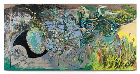 ELLIOTT HUNDLEY,Composition Blue, 2013 Oil on linen 84 x 168 x 2 1/8 inches (213.4 x 426.7 x 5.4 cm) | |||