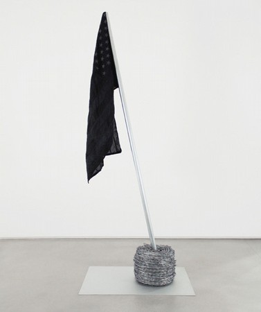 | Robert Buck: Kahpenakwu January 12 - February 18, 2011 Opening reception: Thursday, January 12, 6-8PM For his second show at CRG Gallery, Robert Buck (who previously showed under the name Robert Beck) exhibits sculptures, assemblages, paintings, and drawings inspired by the deserts of the American southwest -- Kahpenakwu, or "west" in the Comanche language. In his desert sojourns, Buck finds source material in the natural environs (lechuguilla seed pods, devil’s head cactus areoles, yucca dagger leaves) and the detritus of American consumerism (rusted sheet metal, a wooden shipping palette, soda cans bleached by the sun). With this found desert material, the artist incorporates construction materials used in off-the-grid structures, including cinder blocks, concrete pavers, and metal fence poles. In Through the Night That, an American flag, dyed pitch black and affixed to a metal pole, stands in a roll of barbed wire. The black flag is graphically reminiscent of a star spangled night sky, while the spiked, tangled physicality of the barbed wire itself echoes desert flora, notably ocotillo plant stalks. Buck finds the tranquility of nature at odds with the artificial and heavily enforced boundaries imposed by the border. Contending with the “other” permeates Buck’s work. In a new series of drawings in which the artist redrafts drawings by American Indians – “savages” after his earlier drawings by “children” – the source material includes drawings by a Kiowa Native American named Silver Horn. Buck redraws Big Horn’s depictions of torture and conflict, highlighting not only the Kiowa tribe’s encounter with otherness, in the White Man, but also the sense that identity and intent are determined historically and contextually. Language informs much of Buck’s work. In his “By Any Other Name” and “Second Hand” painting series, he appropriates signatures from sign-in books from his previous gallery shows. The “Second Hand” series is comprised of thrift store paintings, across which the artist enlarges a signature, and then signs it “R. Buck”. With this action, the artist questions the notion of authorship, while blurring the line between the painting’s original artist, gallery observer, and himself. Both series utilize the grid, as a kind of foundation or screen, either as a means to transcribe a signature to a canvas, or as a digitally printed background – specifically the “transparency” layer found in Adobe Photoshop. The artist employs smoked Plexiglas as a stand-in for gorilla glass—the reflective surface of hand-held Apple products, like iPhones and iPads. In the same way that the Photoshop grid is apperceived as a limit, the murky Plexiglas functions as a marker of our times—before and, ultimately, after Apple. It also serves as a pane through which we encounter images, like the Navajo buck, gleaned from the internet (like all of the images in show) in El Camino Real, or the dismembered victims of a Mexican cartel in An Eye For An Eye For An Eye For An Eye For An Eye. Alongside the natural elements, the lustrous material highlights that what appears literally in reach and immediate may be in truth remote and transitory. Exhibition notes written by Cyrus Saint Amand Poliakoff. CRG GALLERY 548 W 22nd St, New York, NY 10011 | T 212-229-2766 F 212-229-2788 | www.crggallery.com Transportation: C and E trains to 8th Ave at 23rd St / M23 Bus to 10th Ave and 23rd St | ||||
