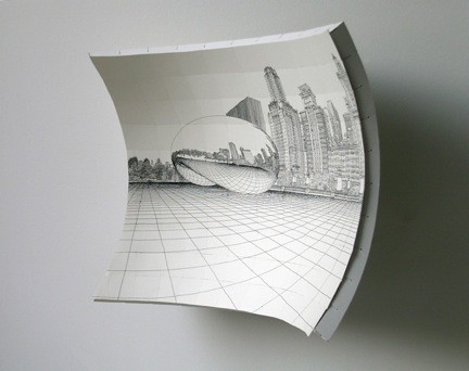 | The Oakes Twins Curated by Lawrence Weschler September 9th – October 29th, 2011 (Opening reception Saturday, September 10th, 6-8pm) “The twins are able to trace the visual world before them, as if with a camera obscura or camera lucida, though in fact without any equipment whatsoever beyond their own visual cortexes—as one of the most significant breakthroughs in the depiction of visual space since the Renaissance…” —Lawrence Weschler Ryan and Trevor Oakes steadfastly pursue a deep and intimate understanding of visual perception and depiction, their investigations generally taking the form of drawings, paintings and sculptures consisting of various media that function as solutions for the questions and tests they propose for themselves. Intellectually rigorous and truly collective in their process, The Oakes Twins’ ambitious practice involves ongoing conversations surrounding concepts like peripheral vision, depth perception and light phenomena coupled with methodical, laborious studies that often involve long hours and much practice. The result is invariably impressive and visually stimulating, precise beyond what one would think possible and clear in the amount of minute detail and time put into every aspect of their work. Bringing It All Back Home: The Cooper Union (left, 2009-2010) is a product of The Oakes Twins’ interest in binocular vision. Namely, the phenomenon that occurs when you look past an object in the foreground to focus on an object further away and the object in the foreground is split in two and both objects become transparent. The artists learned that by harnessing this double-image vision, made possible with a customized, curved easel and attached, rotatable head rest, they could depict what they see in remarkably accurate proportion and perspective. By drawing a bustling area of New York City full of pedestrians, trees and differing architecture, The Oakes Twins successfully prove that their technique can be applied to the most complicated of scenes. Additionally, the canvas’ concave shape matches the curvature of ones eye, thus allowing for an even greater accuracy in scale and a more realistic experience for the viewer. In Cardboard Sculpture (right, 2003), the artists demonstrate how we see the world through spherical splays of light rays by using layers of corrugated cardboard to construct a curved plane. All of the corrugated tubes within the cardboard aim toward the same center point and, when viewed from that point, the entire piece becomes transparent, while if seen from any other vantage point it seems opaque. On view at CUE Art Foundation, The Oakes Twins’ first solo exhibition in New York, will include over forty examples from their many projects, including sculptures and drawings investigating the physics of light and color, center-points, and other visual phenomena. Through all of these works, The Oakes Twins innovatively share with the viewer what it truly means for us to see. ARTIST’S BIO: Colorado-born visual artists and twin brothers, Ryan and Trevor Oakes, have been engaged in a conversation about the nuances of vision since they were children. They explored their mutual fascination with vision throughout grade school and during college at Cooper Union's School of Art in New York City. Since graduating in 2004, they've continued their dialogue through a body of jointly built art pieces that address human vision, light, perception, and the experience of space and depth in the particular way they have come to understand it. The Oakes' artwork is held in the permanent collections of The Field Museum and the Spertus Museum in Chicago. Their public art projects include a large-scale outdoor sculpture that debuted in Chicago's Millennium Park in the summer of 2009, and is now installed at O'Hare International Airport. They have exhibited and lectured about their artwork across the United States and abroad, most recently working with the Palazzo Strozzi Museum in Florence, Italy, during the summer of 2011. In the fall of 2011 the brothers will do a drawing project at the Getty Center in Los Angeles. In the winter of 2012 they will be in residence creating an installation at The Curtis R. Priem Experimental Media and Performing Arts Center (EMPAC) in Troy, New York. In the fall of 2012 they’re invited back to Florence, Italy, to re-envision an artwork of Brunelleschi, creator of the first perspective experiment on the books, demonstrated around 1425. | ||||