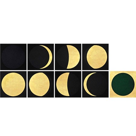 Aisha Khalid: New Moon, 2012 Gouache and gold leaf on wasli Nine parts: 51.8 x 51.8 cm, 20.4 x 20.4 inches each | |||