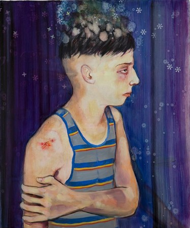 | YOUNGER January 12 - February 25, 2012 Daniel Cooney Fine Art is very proud to announce Younger, an exhibition featuring five artists working with the theme of childhood anxiety. The exhibition consists of photographs, drawings, paintings and video by Christopher Bucklow, Christian Curiel, Zachari Logan, Rachelle Mozman and Tim Roda. Christopher Bucklow contributes a print with unique drawing elements titled All I Have Left Of You Is Me that addresses the passing of time and looking back at ones-self at a younger age. Christian Curiel's paintings are filled with rich, deep color that reflect his childhood spent in Miami, the child of Cuban immigrants. The paintings depict young boys that are isolated and vulnerable. Zachari Logan has made a pastel drawing especially for this exhibition titled Baroque Child. The large-scale drawing depicts the artist as a toddler with a sheep's head, surrounded by butterflies. This eerie image is based on Logan's childhood fear of transforming into a stuffed animal. This drawing could remind a viewer of Logan's recent Daphne drawings where the artist renders himself transformed into a tree. Rachelle Mozman contributes one photograph of a young boy in his lavish Central American home from her series titled Costa del Este. The boy lives in a gated community that divides the rich and poor in his country. He is protected and safe yet seems to be broken and filled with fear. Tim Roda's video and photographs are the only in the exhibition that address the father - son relationship. The artist creates tableaux's where he and his sons reenact memories from his own childhood. The work is fun yet potent as it explores the complexities of familial relationships. Please contact the gallery for images and information at [email protected] | ||||