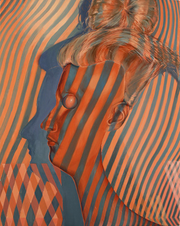 | Sascha Braunig 18 Mar 2011 to 30 Apr 2011 Foxy Production presents Sascha Braunig's debut New York solo exhibition. In a series of spectral oil paintings Braunig reimagines the studio portrait. With saturated colors and an hypnotic style, the works reflect upon illusion and surface. In dream-like scenes where repetition and patterning are foregrounded, Braunig's models emit an extrasensory glow. Flaring with reflected color, they are iridescent beings whose very skin seems to be a source of psychic power. Braunig produces uncanny atmospheres, where costume, make-up, and d�cor fragment and engulf the body. In these hallucinatory visions, the subjects� markers of individuality � their faces, gender, even bodies � are masked, overshadowed or absent. The works� dramatic lighting animates their statue-like subjects, giving a sense of both strength and fragility. In Goldwarp, an illuminated mask�s marble-like eyes hint of a semblance of life within. Carapace�s green tones combine a geometric background with an angular metallic form that could be covering a head or a whole body, and whose red lacing � holding closed its only opening - appears like fierce, sensual teeth. And in Chameleon, golden discs swarm upon a painted figure and a dark curtain, distorting the space in a wave of reflection. Braunig�s work recalls at times George Condo�s mining of the history of portraiture, but where Condo often channels Picasso, Braunig�s precursor may be Magritte, with his sharp representational style and his mysterious juxtapositions. Her paintings also evoke the spirit of performance artist Leigh Bowery whose startling costuming often encased his body. Like Bowery�s �looks�, Braunig�s baroque armors enigmatically reveal a dark yet playful wit within. SASCHA BRAUNIG (Qualicum Beach, BC, Canada, 1983) currently lives and works in Portland, ME. She holds a BFA from The Cooper Union, New York, and an MFA in painting from Yale University. Exhibitions include: LISTE, Basel, Switzerland (upcoming); Foxy Production, NY (both solo, 2011); Freudenreich, Berlin; Everard Findlay, Brooklyn, NY (both 2010); ATM Gallery, New York; Philadelphia Institute for Advanced Study, Philadelphia (both 2009); Speed Limit, Lower Manhattan Cultural Council, New York; John Connelly Presents, New York (both 2006); and The Infinite Fill Show, curated by Cory and Jamie Arcangel, Foxy Production, New York (2004). For high resolution jpgs or further information please reply to this email or call +1 212 239 2758. For news: http://www.foxyproduction.com/news/ FOXY PRODUCTION 623 W 27 ST NYC 10001 USA t: +1 212 239 2758 f: +1 212 239 2759 http://www.foxyproduction.com | ||||