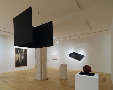 | DOUBLE HEMISPHERE HANY ARMANIOUS MICHAEL BELL-SMITH RAFA� BUJNOWSKI SIMONE GILGES DAVID NOONAN April 10 - May 16, 2009 Opening reception: Friday, April 10, 6-8 pm Hours: Tuesday to Saturday, 11-6 pm DOUBLE HEMISPHERE is a group exhibition of collage, sculpture, painting, drawing, and video by HANY ARMANIOUS, MICHAEL BELL-SMITH, RAFA� BUJNOWSKI, SIMONE GILGES, and DAVID NOONAN. The artists infuse pared-down, monochromatic and patterned approaches with a sense of the poetic and the paradoxical. DOUBLE HEMISPHERE includes line tracings of carpet designs by HANY ARMANIOUS; a painterly geometric animation by MICHAEL BELL-SMITH; a lustrous black oil painting by RAFA� BUJNOWSKI; an installation of sculptural elements within a fabric half-cube by SIMONE GILGES; and a grainy, angular silk-screened collage by DAVID NOONAN. A DOUBLE HEMISPHERE map displays two sides of the globe on the one chart; similarly, the works in the exhibition hold apparent opposites within themselves, including abstraction and figuration, hidden and revealed features, and both streamlined and intricate forms. These juxtapositions instill the works� often-minimalist strategies with a drive toward metaphor and lyricism. HANY ARMANIOUS' tracings on paper of carpet patterns are direct and unambiguous actions upon everyday materials. They are also excavations of the ideas embedded within the original designs. Sparking travels into the imaginary, Armanious� drawings repurpose ornamentation, revealing how conventional composition can be reworked and rethought. In a new video from MICHAEL BELL-SMITH, shapes converge and then fragment to the accompaniment of an ambient, anthemic soundtrack. Combining repetition and variation, and flatness and depth, the work recalls the visual and musical language of TV and movie companies� animated logos. It engenders a sense of exhilaration - as the forms come together and the music rises - that quickly dissipates as they shatter and move apart. RAFA� BUJNOWSKI�s black oil painting Lamp Black: Pentagon (7) combines two distinct areas of luminous patterning within a sharply geometric whole. The work�s groove-like texture, its reflective sheen, and its irregular shape transcend pure abstraction: it moves toward a transitional space where associations and sensualities form and dissolve. SIMONE GILGES� installation places individual sculptural items - a solid black cube made from tropical wood, a fragment of a facial mask with an abstracted nose, and a child-like arm - within a deconstructed cube fashioned from fabric. The work�s disparate elements merge to create a charged symbolic system that is underscored by a powerful sense of transience and imbalance. DAVID NOONAN's Untitled, a silkscreen on jute with linen collage, depicts a child at play with a strange puppet. The scene is dominated by the diagonal lines of the child�s teepee playhouse. The work�s rough-hewn texture and its decolored, low-resolution imagery reduce its narrative force, while amplifying its sense of formal and emotional unease. HANY ARMANIOUS (Ismalia, Egypt, 1962) lives and works in Sydney, Australia. He holds a BA in Visual Arts from City Art Institute, Sydney. Selected exhibitions include Contemporary Art Museum, St. Louis MO (solo) (2008); City Gallery, Wellington, New Zealand (solo)(2007); Institute of Modern Art, Brisbane (solo); Monash University Museum of Art, Melbourne; Busan Biennale (all 2006); Ocular Lab Inc., Melbourne (solo); National Gallery of Australia, Canberra (both 2005); Auckland Art Gallery, New Zealand (solo)(2004); Ian Potter Museum, Melbourne (solo)(2002); and UCLA Hammer Museum, Los Angeles (solo)(2001). MICHAEL BELL-SMITH (East Corinth, ME, 1978) lives and works in Brooklyn, NY. He holds a BA in Semiotics from Brown University, Providence RI. Selected exhibitions include the 2008 Liverpool Biennial; The 5th Seoul International Media Biennale; The New Museum, New York; Hirshhorn Museum, Washington DC; Krannert Art Museum, University of Illinois, Urbana-Champaign IL (all 2008); Musee d'Art moderne de la Ville de Paris; Museum of Modern Art, New York (screening); Dallas Center for Contemporary Art (all 2007); Museum of Fine Arts, Lausanne, Switzerland (screening) (2006); and Tate Liverpool, UK (2005). RAFA� BUJNOWSKI (Wadowice, Poland, 1974) lives and works in Krakow, Poland. He studied in architecture at the Krakow University of Technology and graphic arts at Krakow Fine Arts Academy. He and was founder and curator of Galeria Otwarta, Krakow (1998-2001); and co-founded Ladnie artist's group (1995-2001). He was artist-in-residence at Art in General, New York (2004); and won the international art award Kunstpreis Europas Zukunft (2005). He has exhibited at Ibid Projects, London (2008); Galerie Johnen+Schoettle, Cologne; Daniel Hug, Los Angeles (both 2007); Center for Contemporary Art, Warsaw (solo); National Gallery of Art, Warsaw (both 2006); Prague Biennale; The Rubell Family Collection, Miami (both 2005); Raster, Warsaw (2004). SIMONE GILGES (Bonn, Germany, 1973) lives and works in Berlin. Gilges studied visual communication at UdK-Berlin and photography at FH Dortmund. She is a founding member of Honey-Suckle Company (HSC), Berlin; founder of publisher and project space �Neue Dokumente�, Berlin; and publisher of �freier� magazine. Exhibitions include Badischer Kunstverein, Karlsruhe; Kunstverein Hannover (both 2009); Galerie Giti Nourbakhsch, Berlin (solo); pret a pARTager, Dakar, Senegal; Frankfurter Kunstverein, Frankfurt (HSC) (all 2008); Kunstraum Innsbruck; Kunstverein Harburger Bahnhof, Hamburg (solo with HSC) (both 2007); K�nstlerhaus Stuttgart; Kunsthalle Basel, Switzerland (solo with HSC) (all 2006); CRAC Alsace, France (solo); K�nstlerhaus Stuttgart (both 2005); Wilhelm-Lehmbruck Museum, Duisburg (solo) (2002); Kunst-Werke, Berlin (HSC) (2001); PS1 Contemporary Art Center, New York (HSC) (1999); 1st Berlin Biennial (HSC) (1998). DAVID NOONAN (Ballara