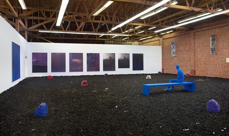 | Sayre Gomez I’m Different October 10 – November 22 2014 Opening Reception:Friday, October 107 – 10PM François Ghebaly is pleased present “Im Different”, Sayre Gomez’ first solo exhibition in Los Angeles. The exhibition will consist of 4 distinct yet related bodies of work that are all centered around the ideas of ___________ , ______________ , ________ , ________________ , ______________ . Each body of work is presented within two different yet highly contrived spaces loosely referencing a shopping center with its indoor showroom, and surrounding outdoor garden. In the main gallery, on first steps into “The Hypnotic Presence of Popular Music in Southern California”, the artist’s first large-scale, multi-channel installation. Covering the entire space, the work is comprised of 12 speakers housed within individually painted fiberglass outdoor garden rocks resting on a bed of woodchips. Each respective rock plays a different pop “anthem” sourced from Mark Zuckerberg’s playlist titled Quest, which is publicly accessible on the music streaming platform Spotify. Further referencing outdoor spaces, painted banners hang on the brick wall of the gallery. Designed by Chicago-based design firm, Struggle Inc., the banners feature various slogans sourced from algorithmically generated “lorem ipsum”, a design industry tool often referred to as dummy text. The remaining walls will present a series of Gomez’ new paintings. The subtle color gradients from dark to light purples and blues range from representation to abstraction, and lead the viewer from the “outdoor” space into the “indoor” space housed in the adjacent room. Gomez’ paintings employ industrial application processes, such as airbrush and automotive paint sprayers, techniques that have historically been used in the film and advertising industries. While the representational paintings of images drawn from different online sharing platforms appear photographic, they are also made to be photographed, a primary intention of the histories being referenced. The process of his abstract works also share a similar relationship to representation. At first black and white, the compositions are buried under layers of pigmented varnish creating a sensational “window” from which the abstractions peak through at differing levels of opacity and color. Following the paintings, and entering the Show Room the viewer will encounter two sculptures of identical mid-century northern European designed coffee tables. Constructed from three distinctly different materials and surfaces, they will be adorned with objects commonly found in the homes of ____________, such as ___________, _____________, and __________. Near the tables, “Large Plinth with Records” features a patina similar to artist’s abstract paintings, and prominently features a stack of cast vinyl records. The room will also feature “Uww (Untitled window work)”, in which the artist repurposes a salvaged window as an artwork by installing it directly into the gallery wall. Because of the reflective nature of the glass the window is never without an image. It functions as both an object to look into, and an object to look at. Finally, the large painting “Generation Gap”, features two popular quotes turned slogans from John Lennon and Kurt Cobain. Sayre Gomez holds a BFA from the School of Art Institute of Chicago (2005) and an MFA from CalArts (2008). Recent solo exhibitions include Slippery at The HOLE in New York, This is to Sink at Michael Jon Gallery in Miami, and Windows and Mirrors jointly hosted by Kavi Gupta Gallery and New Capital, in Chicago. The Artist also co-organized, with JPW3, the exhibition Culm at Night Gallery in Los Angeles, and has recently participated in group exhibitions at Fluxia in Milan, 356 Mission St. in Los Angeles, Clearing in New York, Robert Blumenthal in New York, Nagel/Draxler in Cologne, and Balice Hertling in Paris. Gomez’s work is included in BRIGHT!: Typography Between Illustration and Art, Published by DAAB, in 2013, and 100 New Artists published in 2012 by Lawrence King, UK. His work has been featured in various publications and blogs such as Artforum Magazine, Artforum.com, Contemporary Art Daily, and Flaunt Magazine. | ||||