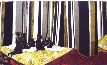 | Maeghan Reid 15 November - 10 January 2009 Opening Reception Saturday 15 November, 2008 Chung King Project is pleased to host the solo debut of Los Angeles-based artist, Maeghan Reid (born 1980). The history of nomadic populations, outsiders of society, hoboes, soothsayers, seekers and gypsies inspire Reid's new work in collages on panel and paper. She investigates the peregrinating bands of people who travel indefinitely, either choosing between rambling outside the borders of established societies, or forced into nomadic existences due to natural disasters, war, politics, or economic crises. The work explores these themes using various elements whether it be vintage photographs from the mid-1800s, crushed velvet from Winnipeg, Turkish green satin, linoleum unearthed from a car factory in Detroit, or a stodgy piece of foam core from the alley. ?They are all compiled, layered, abstracted and re-processed to reflect on the untold story of these outsiders of the mainstream, usually forgotten by the traditional narratives of history. Maeghan Reid's work has been widely exhibited both in the US and in Europe including Zieher Smith, NYC; Kantor/Feuer, Michael Kohn, Happy Lion and Monte Vista Project, Los Angeles, and the Forgotten Bar in Berlin. | ||||