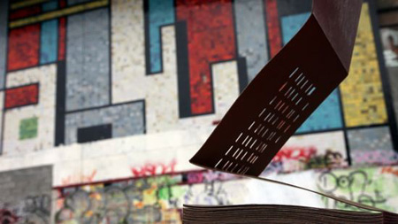 | Anri Sala May 14 - July 30 2011 The Chantal Crousel gallery is pleased to announce the fourth solo exhibition of Anri Sala at the gallery. Sound and music have an important place in the work of the artist. They are the main focus of the exhibition. Anri Sala searches to capture the influence of space on the creation of sound and reassesses its relationship to an image. The exhibition is imagined as an intersection of echoes and transpositions where the works reconstruct themselves in other moments and spaces. On the day of the opening, in the gallery courtyard, the visitors will give their personal invitations to be inserted into a barrel organ player. In the form of a punch card, each invitation will trigger the playing of four distinct seconds of a well-known punk song. Randomly inserted into the organ, Invitations 1, 2011 produces a deconstructed offspring of the punk song. Like a strange echo, where disruption and continuance both play the same tune, from inside the gallery, a familiar melody is heard. In the film Le Clash, 2010 from the interior of a bricked up building, a once influential rock and punk venue, comes the famous riff of a song. Slowly revolving the handle of a barrel organ, two musicians stroll past the abandoned concert hall. The sounds of the organ and their singing synchronize with the resonating riff, prompting a simultaneous stereo effect. A man wanders around the place with a shoebox under his arm. Listening absentmindedly, he slowly turns a small handle that sets off - note by note - a different version of the same song. When the distinct melodies conjoin, a sense of shifting reality occurs, highlighting two differing recollections of the punk song. A music box - previously camouflaged inside a shoebox seen in Le Clash - is mounted on a window opposite the projection. No Window no Cry (Le Corbusier, Maison-atelier Lipschitz, Boulogne)2, 2011 enables the visitor to play the gallery space like an instrument. �Playing� the window, adds an additional layer to the soundtrack of the film. An identical window in the Maison-atelier by LeCorbusier allows the visitors to play the tune of the punk song to a different surrounding. The perforated partition of the barrel organ has been carved in one of the gallery walls, an act that transposes sound into another materiality. Score, 2001, allows for the outdoor sound and the music from inside to intertwine. When Le Clash ends, the viewer is incited to follow the voice of Madama Butterfly. Based on Giacomo Puccini�s aria Vogliatemi bene, un bene piccolino, 5 Flutterbyes is a duet between five sopranos and two baritones. When one soprano sings, the other sopranos withhold their voices. The instant the soprano suspends her voice another soprano takes over. Singing in turns from different whereabouts, the five sopranos reveal a wandering presence of Madama Butterfly. An illuminated fan, previously used in the performance of 5 Flutterbyes 3, is placed above one of the skylight windows of the gallery. Why the Lion Roars, 2009 is a composition of feature films that communicate through a feeling for temperature. Each of the fifty-seven selected films represents specifically defined degrees; from minus 11�C to 45�C. A thermometer measures the temperature oustide the projection space and simultaneously edits the film programme, which changes in correspondance with the actual outdoor temperature. The commotions of weather dictate the films� narrative. At the exact moment of an increase or decrease in temperature, each film is interrupted and replaced by another, provoking an unplanned collision of meaning. Some films are seen as fragments as the temperature fluctuates widly in the morning while others are projected in the whole or even loop as the temperature stabilizes later in the day. Endlessly edited by the fluctuation of the weather, Why the Lion Roars trusts the climatic chance its unique convergence of fiction. A daily forecast of Why the Lion Roars, based on the weather in Paris during 2009, has been compiled into a book that is exhibited along ten photographs of temperature changes. Each photograph captures the precise moment when one film replaces another. In the forecast book, a colour is assigned to each film: either one that has been singled out from a key scene or a colour remnant of filmic memory. While the colours merge in the book due to the daily approximative projection of temperature changes, different scenes from two separate films merge in each photograph due to the camera�s exposure time. 1. Invitations was already performed in Mexico in 2011 and can be re-activated in other places or times. 2. The window is a custom-made duplicate of an original window of a maison-atelier built by Le Corbusier in Boulogne, France. It adds to a series of windows where the artist already installed the music box: The Cicillo Matarazzo Pavilion built by Oscar Niemeyer in Sao Paulo, and the Central Library of UNAM in Mexico built by Juan O�Gorman 3. 5 Flutterbyes was originally performed in the Il Tempo del Postino group show at the Manchester International Festival in 2007. During the performance the opera house was plunged into darkness, only lit the flickering light of the fans. Galerie Chantal Crousel 10 rue Charlot 75003 Paris T. +33 1 42 77 38 87 F. +33 1 42 77 59 00 [email protected] www.crousel.com | ||||