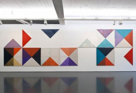 | Ana Cardoso Program vs. Program May 24 - July 10, 2012 Pedro Cera is pleased to announce Program Vs. Program, the first solo exhibition by Ana Cardoso (b. 1978, Lisbon) at the gallery. Her multifaceted practice incorporates painting, installation, textiles, sound, and video. Cardoso works on the history of abstraction in their relationship with the signs of everyday life. Throughout the main room the artist displays an overall painting installation of new works, Modules HD – last chapter of a yearlong project – that becomes the leitmotif for this show. Modules HD is a project in painting programming. A programmatic suit of painterly gestures expands on the morphological surface of painting through the fabrication of pre-programmed modular items that efficiently ignite an infinite grid, and flip visual signs in a tromp l'oeil fashion. This assembly line imagines the outcome of a modular dissemination of painting, where minimal repetition performs a modernist program bare of its idealism, yet holding on to each individual painting as an element of crafted difference and induced composition. Paintings that symptomatically desire each other, generating new visual relations by addition & addiction. With Donne Dialogueand Fabric Flipper the display of parts is as specific as a triangular diagram of interlocked signs that wishes to identify and place the viewer in regard to the gallery space and to Modules HD. Galeria Pedro Cera Rua do Patrocínio, 67 E P - 1350-229 Lisbon Portugal Europe T: +351 21 8162032 F: +351 21 8162033 W: www.pedrocera.com | ||||