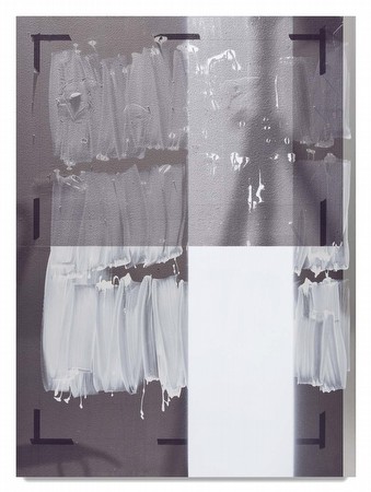 | Nathan Hylden - More Over 14 juin - 26 Juillet 2014 La galerie Art : Concept est heureuse de présenter la troisième exposition de Nathan Hylden, au cours de laquelle il présentera une nouvelle série de peintures sur aluminium. Once I get started, Meanwhile et désormais More Over sont autant de titres d’exposition qui inscrivent le travail de Nathan Hylden non seulement dans une problématique de temporalité mais aussi de rationalité quant à l’acte même de créer et de construire une exposition, l’un n’allant pas sans l’autre dans la conception artistique de l’artiste. La galerie devient le réceptacle des oeuvres mais en est aussi un élément à part entière, faisant de l’exposition une sorte de sculpture totale à la temporalité déterminée. Entre cette temporalité et le positionnement du spectateur existent des liens essentiels, et du travail de Nathan Hylden vont découler de multiples interrogations. A première vue, ces peintures sont presque fantomatiques, mais chacune, avec sa propre densité, va créer une sorte de séquence, une décomposition d’images issues de l’atelier, là l’ombre d’une chaise, ici celle d’un appareil photo. Le postulat de départ de chacune des peintures sur aluminium de Nathan Hylden réside dans des photographies prises dans l’atelier notamment du mur supposé recevoir le tableau une fois celuici terminé. Sérigraphiées sur des plaques d’aluminium ces photographies deviennent la matrice d’un corpus séquentiel qui ordonne chaque oeuvre. Les plaques se supperposent, s’interpénètrent, chacune recevant sa quantité de peinture blanche appliquée au spray ainsi qu’un nombre de gestes maîtrisés appliqués au pinceau, développant ainsi le fil conducteur d’une narration, celle de la création d’un tableau mais d’un tableau qui peut être n’existe pas encore ou n’existera jamais... De l’abstraction naît une figuration constituée d’une réalité parallèle où la temporalité visuelle se trouve débordée par une temporalité imaginative. Cette temporalité ainsi représentée va agir sur l’oeuvre jusqu’à en faire une sorte de décalque étrange de la réalité nous amenant à nous interroger sur les rapports unissant la perception et l’image. A mi-chemin entre moment suspendu et révélation de l’image, les tableaux de Nathan Hylden démontrent que l’existence des objets de l’atelier ou de ce tableau “absent” diffère en nature du type d’existence de l’objet réél. L’image mentale construite par le spectateur correspond à une sorte de monde annexe, elle permet de poser l’absence ou l’existence de tel ou tel objet. Les reproductions graphiques ou mécaniques utilisées par l’artiste sont autant de moyens de substituer la symbolique d’une possible réalité vécue. Jouant avec des codes presque cinématographiques, les images démultipliées de Nathan Hylden s’inscrivent dans un temps donné, un temps en suspens mi-présent, mi-futur proche. Chaque peinture devenant le résumé symbolique d’un stade dans une évolution que seule la séquence ordonne. Aurélia Bourquard Nathan Hylden est né en 1978 Fergus Falls, Minnesota. Il vit et travaille à Los Angeles. Expositions: Beware Wet Paint, Fondazione Sandretto Re Rebaudengo, Turin; Love Story, Die Sammlung Anne und Wolfgang Titze, 21er Haus / Belvedere, Vienne; The Floating Admiral, dans le cadre de Nouvelles Vagues, Palais de Tokyo, Paris; Meanwhile, Kunstverein, Hamburg; Meanwhile, Johann König, Berlin; L’Origine des choses, Collection du Centre National des Arts Plastiques, La CENTRALE for Contemporary Art, Bruxelles; Lost in LA – an art exhibition & experience, Los Angeles Municipal Art Gallery, Barnsdall Art Park, Los Angeles; Minimal Myth, Museum Boijmans, Rotterdam. --- Art : Concept is pleased to present the third solo exhibition by Nathan Hylden, in which he will present a new series of paintings on aluminum. Once I get started, Meanwhile, and now More Over are three exhibition titles that not only inscribe Nathan Hylden’s work within thoughts related to time, but also within a reflection on the creative act of making an exhibition, both ideas working together within the artist’s conception. The gallery turns into a receptacle for works, but is also promoted to the status of work of art in itself, turning into a kind of total sculpture, temporal in nature. There are essential links between this temporality and the agency of visitor, and from Nathan Hylden’s work multiple questions arise. At first glance, Nathan Hylden’s paintings seem almost ghostly, each with its own density, yet creating a sequence, a decomposed set of images from the studio: here the shadow of the camera itself, there the shadow of a chair. The starting point of each aluminum painting lies in a photograph taken in the studio, a photograph of the very wall that will support the painting upon completion. Silk-screened on aluminum sheets, these photographs are elements in a sequential matrix that is rearranged in each work. The sheets are superimposed on each other, overlapping, each receives its part of a field of white sprayed paint, and a wash of metered gestural brush strokes, developing a common thread of a narration, that of the creation of a painting, but perhaps a painting that does not exist, or can never be present. From abstraction emerges a parallel reality in which visual temporality is overwhelmed by imaginative temporality. Time realized as representation will have an effect on the piece; turning it into a strange trace of reality and leading us to question the relationship between perception and image. Halfway between a suspended moment and the revelation of an image, Nathan Hylden’s paintings prove that there is a difference in quality between the existence of certain objects from his studio, the existence of the “absent” painting formed by our mind and the plain existence of a real object. The me