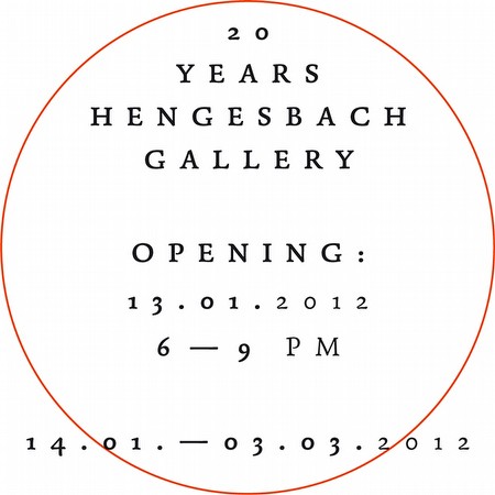 | | | HENGESBACH GALLERY: 20 YEARS HENGESBACH GALLERY - 14 Jan 2012 to 14 Apr 2012 Current Exhibition | 14 Jan 2012 to 14 Apr 2012 Tuesday-Saturday 11am-6pm | HENGESBACH GALLERY Charlottenstra�e 1 10969 Berlin � Mitte Berlin Germany Europe T: +49 (0)30 � 209 137 97 F: +49 (0)30 � 209 137 99 M: W: www.hengesbach-gallery.de