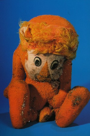 ‘Between 1972 – 1983, I did a series of performances which involved masks, bottles, pans, uniforms, dolls, stuffed animals, etc. After the performances these objects were either left behind or they were collected and stored in suitcases and trunks to be used in future performances. In 1983, the closed suitcases and trunks containing these performance objects were stacked on a table and exhibited as sculpture. In 1991, I opened the suitcases and trunks photographing each item. The group of photographs in their entirety was titled PROPO’. – Paul McCarthy