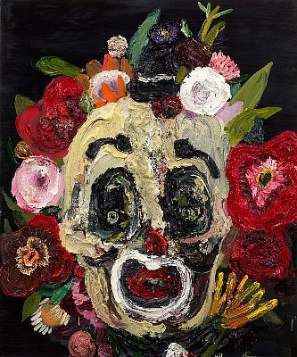 In many instances Schulnik draws from film, music and a contemporary sense of the gothic. Her heroes are culled from a mix of reality and imagination, and subsequently elevated into the realm of painting. Engulfed in layers of gloopy paint, Schulnik�s characters -the otherworldly hobo clowns, misshapen animals, and alien beasts- are each built upon a human frame, resulting in an awkward and surprising earthliness. In line with our contemporary understanding of tragedy, the protagonists appear both admirable and flawed. We are able to understand and empathize with them whether they are occupied with strange buffoonery or presented in a simple, dignified moment.