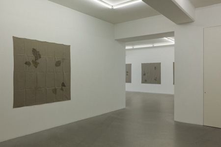 | Helen Mirra - Field Index 3 Opening: 26 th May, 17.00 - 20.00 Exhibition period: 27 th May – 26th June, 2011 Opening hours: Tuesday - Friday 11.00 - 18.00, Saturday - Sunday 12.00 - 16.00 After a number of years making discrete works in various materials considering various subjects, I've arrived at a rhythm of working which takes the form of walking and making prints along the way. This rhythm is nestled into a cycle of exhibitions that perpetuates the project. When I ʼ m invited for an exhibition, the condition is that I am able to spend a few weeks walking thereabouts, and the work I make therein is for a following show, somewhere else. At the next place, I again walk, and that work is then for the next show again. So starting in Massachusetts, where I currently live, I made a group of works for the Maramotti Collection in Reggio Emilia, Italy. Walking near Reggio Emilia is the method of production for the works which are shown in Stockholm. Around the time of the exhibition at Galerie Nordenhake, in turn, while in residency at IASPIS, I will walk here in Sweden, and the resulting works will be shown somewhere else, and so on. Currently the works are made of prints (rubbings) made with oil stick on lightweight raw linen, which is folded for transport in my backpack. The direct impressions of paradigmatic materials picked up en route are hourly directional recordings made over the course of a single day's walk, in the direction of my path. The resulting works are indeterminate of their geographic location, neither photographic nor descriptive, but nonetheless an insistent sort of fact. Additionally, when I break from walking to make a print, I also write a brief text (of 5, 7, or 9 words) regarding something about the current situation along the walk. The then compiled text is another kind of field index. The prints do not demonstrate the predominant activity of the project at large; having said that, the walking is the means that enables the process. Helen Mirra (born 1970) currently lives in Cambridge Massachusetts. In June, under the auspices of the exhibition Measuring the World at Kunsthaus Graz, her city-wide project Farbenweg, Indirekter will be installed in the various houses of the Universalmuseum Joanneum. Her exhibition Field Recordings 1-3 will open in September at Bonner Kunstverein, Bonn, and travel to KW Institute for Contemporary Art, Berlin, and on to Haus Konstruktiv, Zurich. Past solo exhibition venues include DAAD Galerie, Berlin, Galerie Nelson, Paris, Galerie Meyer Riegger, Karlsruhe/Berlin, Dallas Museum of Art, Whitney Museum of American Art, Berkeley Art Museum, and the Renaissance Society, Chicago. This is Mirra ʼ s second solo exhibition at Galerie Nordenhake Stockholm. | ||||