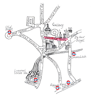 | A collaboration between three artists - two very different painters and a sculptor, from Germany, Iceland and the UK respectively - which will transform the gallery into a place of conjecture where the eye and the brain are teased by works which both in two dimensions and three play with our awareness of the spaces we inhabit - before us, around us, and finally within us. Is that a painting I see before me? Est-ce que ceci n'est pas une pipe? For The Thinnest Door I�ve Ever Sold, Anna Gudjonsdottir will make three new zip canvasses. These wall-sized stretched fabrics will alter the gallery, and modify the space to give the exhibition its own architecture and create an unavoidable relationship with the body. The purpose being not so much a physical understanding of painting, more an analysis of its potential to handle external space as direct register for a limitless internal geography. �there is as much space in the individual as outside her. These two spaces can expand equally and without limits.� Helene Appel will show a large painting, in which seven long twigs and two small clocks are delicately rendered, placed precisely on a large un-primed linen ground. After a time, the soft reflection from the glass of Appel�s clocks begins to reflect back a look, two eyes patiently returning a gaze. In Appel�s work depictions of disregarded fragments of daily life, piles of dust, pre-packed salad leaves, or broken branches for example, are superimposed like faint after-images of abstraction, painterly gesture and pose; the casually flat distribution of these painted depictions is offset by the strict formal complexity of Appel�s compositions. Simon Logan will make a sculpture that also functions as a seat, underneath which will be a number of partly hidden things. Logan�s work is mainly sculptural, and is concerned with a kind of neurotic relationship between the way things look, and the kind of imaginary object that this can leave behind, long after the looking has finished. The sculptures are constructed as arrangements of things and occasionally images. There is often an ambiguous back and forth between what appear to be complex suggestions of thoughts and visual propositions, and dumb and simple suggestions of resemblance and quick visual equivalences. The Thinnest Door I�ve Ever Sold will also contain other smaller works by each artist. Singly and in combination the work suggests an implied or hidden activity, a kind of continuing performance in which the viewer is drawn into complicity. On Whitechapel/Time Out First Thursday 4th October 6 - 9 pm the artists will lead into the show by presenting two films, one shot in Hamburg, the other in Bow; two journeys between spaces where art is made and the outside world, evidence of a performative journey and an exploration of landscape. A further alternation of the imagined and the literal. for further information or images contact Michael Keenan as above or call 07952986696 | ||||