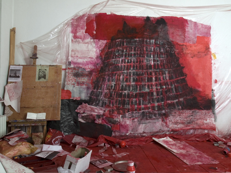 | ANGELA DWYER girls, dogs, falling cities Opening Friday, February 1st, 7 p.m. February 2nd - March 29, 2008 For the english version please scroll down. Bei ihrer aktuellen Serie von Papierarbeiten besch�ftigt sich Angela Dwyer erstmals wieder mit der Gegenst�ndlichkeit, nachdem sie die letzten 20 Jahre praktisch ausschlie�lich abstrakt gearbeitet hat. Geradezu obsessiv widmete sich die K�nstlerin in dieser Zeit Quadraten oder Rastern, deren geometrische Pr�zision von einer pastos gespachtelten Malerei in raue, plastische Gebilde transformiert wurde. Parallel dazu entstanden immer wieder Schriftbilder auf Papier, deren Verfahren eng mit dem Begriff des Samplings verbunden ist, wie er aus der Musik bekannt ist. Textfragmente aus Gedichten, Romanen, Essays, Bibelstellen, Zeitungsartikeln, oder pers�nliche Notizen werden dabei aus ihrem urspr�nglichen Zusammenhang gel�st und als handgeschriebene Elemente in das Material der Bilder eingebettet. Als Weiterentwicklung dieses Prinzips tauchen in der neuen Serie nun auch Bild-Zitate aus der Kunstgeschichte auf, etwa Brueghels Turm zu Babel oder Tizians Diana. Ebenso flie�en aber auch Zeichnungen von lebenden Modellen oder Skizzen als Bildmaterial ein. Diese unterschiedlichen Bausteine verbinden sich bei Angela Dwyer zu einer dicht gewobenen Bild-Text-Synthese, die Assoziationen an archaische, alchemistische Prozesse weckt. Die einzelnen Elemente bleiben letztlich noch erkennbar, doch scheinen sie unter dem Einfluss von Hitze oder gro�en Druck zu einem schlackehaltigen, teilweise br�chigen Amalgam verschmolzen zu sein: Mehrere Papierschichten �berlagern sich oder sind aufeinander geklebt, die R�nder sind ausgefranst und eingerissen, das Werk ist in einem fragilen, verletzlichen Zustand belassen. Die Magie von Angela Dwyers Bildern fu�t auf der ungemein sinnlichen Behandlung des Materials, der intensiven Leuchtkraft und feinen Nuancierung der Farben sowie der grunds�tzlichen Haltung gegen�ber dem Bild als Objekt. Ihre Werke sind der Sph�re des Ateliers noch stets sehr nahe, als ob die Transformation der Materie in einer Art Zwischenstadium, einem Limbo am Rande der H�lle, belassen wurde. Angela Dwyer entf�hrt die Betrachter damit in eine Welt, in der der k�nstlerische Akt eine Pr�senz hat, wie sie vielleicht zuletzt im Kino, in Jacques Rivettes Meisterwerk La belle noiseuse von 1991, zu sehen war. Vor ihren Bildern meint man das Kratzen des Kohlestiftes, das Knacken von Pigmentpartikeln, das Wischen der Hand auf dem Papier zu h�ren. Es sind existentielle Zeugnisse eines Dialogs, in dem die K�nstlerin auf zweifache Weise gegenw�rtig bleibt. Zum einen in Gestalt des handwerklichen Prozesses und zum anderen in Form einer Geistigkeit, die sich in der Auswahl und Verwendung der Texte manifestiert und deren reichhaltige Referenzen von jedem Betrachter unterschiedlich erschlossen werden k�nnen. Text von Marc Wellmann Angela Dwyer's present series of paper works heralds a return to representational art after 20 years of nearly exclusively working in abstracts. During that time, she was almost obsessively fascinated by the qualities of squares or patterns, using thick spatula-applied paints to transform geometric precision into coarse, three-dimensional shapes. In parallel works, Angela Dwyer was creating script pictures on paper by adapting a process closely related to sampling in music. For these works, textual fragments from poems, novels, essays, Biblical quotes, newspapers or personal notes are dislocated from their original context and embedded as hand-written elements into the material of the pictures. For her new series, she has further refined this principle by including image quotes from the canon of art history, for example, Brueghel's Tower of Babel or Titian's Diana. Similarly, she is also integrating pictorial images from sketches or drawings of live models. In Angela Dwyer's works, these different components are combined to form a closely woven synthesis of image and text, evoking associations of archaic, alchemistic processes. Ultimately, the individual elements remain identifiable, though they seem to have been exposed to some enormous heat or pressure that has melted them down to form an extract-like amalgam, cracked in places: multiple layers of paper overlapping or glued one over the other, the edges frayed and torn, the work left in a fragile, vulnerable state. The magic of Angela Dwyer's pictures rests on the intensely sensual treatment of the material, the vital luminosity and delicate nuances of colour and her essential attitude towards the picture as an object. Her works are always very close to the realm of the studio, as if the transformation of the material has been left in a kind of intermediate stage, a limbo on the borders of hell. In this way, she transports the viewer into a world where the artistic act has a tangible presence � a presence perhaps last seen as vividly in Jacques Rivette's 1991 film masterpiece La belle noiseuse. Standing in front of Angela Dwyer's works, it seems as if one can hear the scratching of the charcoal, the crackle of pigment particles, the sound of a hand brushing across paper. These are existential witnesses of a dialogue where the artist remains present in two ways. Firstly, in the shape of the crafted processes and, secondly, in the form of an idea evident in the selection and use of the texts which, by offering a wealth of associations, allow each viewer to access the work differently. Text by Marc Wellmann | ||||