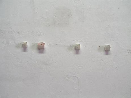 | Armanda Duarte Subtrac��es September 25 � October 31, 2008 Opening reception on Thursday, September 25 at 10 pm Guided tour by the artist on Saturday, October 4 at 5 pm New Opening Hours from September 1: Monday through Saturday from 3 to 5 pm and by appointment. Entitled Subtrac��es (Subtractions), this exhibition by Portuguese artist Armanda Duarte offers a body of work revealing situations that focus on the specific, where experience is not the result of chance, but rather the fruit of a close observation of life and the construction of things. The approach to selected objects occurs through various installations which have been carefully chosen, in which they and the moments in which they occur are part of and represent a particular system of established relationships. The works are explorations constructed from a series of imperceptible steps governed by a logic and rules of their own, embracing a timeframe, which although essential to the artist for their creation, is not necessarily their own. Between the colour and the design itself � the main motivation for the juxtaposition of three adjacent perspectives � and the conceptualization of the scene, condensed in terms of subject matter and composition, the works selected formalize the gathering together of elements that provide a structure for each object, whether as a form of mental of physical exercise. Armanda Duarte has paid close attention throughout the work to the mathematical principles that underlie the essence of each object. Submitting parallel processes to an almost scientific logic, the works become on the one hand subjects of study, and on the other, producers of this perspective to which, in fact, exercises in subtraction and addition or the reference to units of measurement are frequently associated as an elementary form of organization and an ordering of the materials used. In so far as these mathematical exercises allow, at the level of the sciences, wherein alternative responses, observations and ideally conclusions can be found, so in the artist�s work there exists the intention to equate the perception that develops from the real, without, however, ignoring the possibilities defined by the senses. Circumscribing the situations and places, the creation of limits according to the outcome of cycles sets up an urgent tension, from which the sentient/emotional world cannot disassociate itself. As a result, the design emerges as a privileged instrument of investigation, essential to the process of abstraction through which conceptual evidence is strengthened, projecting it structurally in a preferential amplitude of pre-existing formal possibilities, but one which Armanda Duarte lays open to discovery. Armanda Duarte (1961) completed her degree in Communication Design at the Lisbon Faculty of Fine Arts (FBAUL). Since the late eighties, her work has been shown regularly in institutions, biennials, galleries, and independent spaces in Portugal and abroad. Among the recent exhibitions, one can distinguish her latest solo exhibition at the beginning of 2008 at the space Plataforma Revolver in Lisbon (Uma Combina��o, curated by Francisco Vaz Fernandes), her two solo exhibitions at the National Museum of Natural History in Lisbon (Sala do Veado, 1993 and 1999), and her latest two collective exhibitions: one at the Lagos Cultural Centre (Armanda D., �ngela F., Ana V., Fernanda F., Maria L., Susanne T., curated by Alexandre Barata, 2007) and the other at the Presidential Palace in Bel�m (Jardim Aberto, curated by Filipa Oliveira, 2007). Since 2000, the artist took part in many collective exhibitions among which the one at the JAP Modern Art Centre in Lisbon (Meeting Points, 2004), the ones at Culturgest Lisbon (Mediterr�neo: um novo muro?, curated by F�tima Ramos & Ant�nio Pinto Ribeiro, 2001 and Um oceano inteiro para nadar, 2000), the ones at Culturgest Porto (A colec��o Ivo Martins, 2004 and Novas aquisi��es da CGD, 2002), and the one at the D. Luis I Foundation in Cascais (City Desk Sculpture Prize 2001). Her work can be seen in the public collection of the Caixa Geral de Dep�sitos (Culturgest Portugal) and is represented in the private collections of Ivo Martins and artist Pedro Cabrita Reis as well as of other collectors in Portugal. Rita Santos, June 2008 Caroline Pag�s Gallery Upcoming exhibition: Lori Hersberger, Francisco da Mata, Gerold Miller A Triple Act November 13 [10 pm], 2008 � January 3, 2009 | ||||