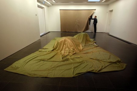 GUSTAV METZGER, Historic Photographs: To Crawl Into - Anschluss, Vienna, March 1938, 1996/2013 Installation view Serpentine Gallery, London, 2009 b/w photograph on PVC, yellow cotton cover, 315 x 425 cm | |||