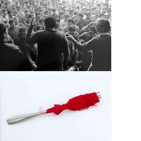 | Boris Cvjetanovic & Mladen Stilinovic Dialogue Curated by Branka Stipancic VERNISSAGE le jeudi 20 octobre de 18h à 22h (pendant la Nocturne des Galeries) OPENING on Thursday, October 20th, 2011, 6-10pm (during the Parisian Galleries Night Out) EXPOSITION du 6 octobre au 12 novembre 2011 EXHIBITION from October 6th to November 12th, 2011 Communiqué de Presse Dans ses oeuvres Mladen Stilinovic se concentre sur le langage propre à la politique et à son reflet dans l'art et dans la vie quotidienne. Il étudie le domaine du signe artistique et celui du langage parlé en décodant les clichés verbaux et visuels, afin d'isoler le langage des idées et connotations politiques courantes. Il ne s'agit pas seulement du verbe, il y a aussi la couleur rouge et les symboles de la communauté socialiste : le drapeau et l'étoile. Le slogan L'attaque de mon art, c'est l'attaque du socialisme et du progrès (Napad na moju umjetnost, napad je na socijalizam i napredak) (1977), écrit sur une soie rose artificielle, est très caractéristique pour différentes raisons. En utilisant le paradoxe et la manipulation, Stilinovic s'approprie la brutalité du discours politique pour identifier les rôles des intervenants. «Si le langage est la propriété de l'idéologie, moi aussi, je veux devenir le propriétaire de ce langage, je veux le penser avec toutes les conséquences que cela comporte », écrit l'artiste dans Le texte ébauche (Tekst nogom, 1984). L'absurdité d'expression et l'agressivité répétée de la parole dans la réalité socialiste sont rassemblées dans les oeuvres dont le thème est le travail et où la parole n'est devenue qu'un babillage sans aucun sens. Dans un de ses livres d'artiste, Solitudes II (Samoce II) (1976), l'artiste utilise les photographies de la foule dans laquelle il découpe les individus et les colle sur les pages de son livre, puis écrit la légende «pris à la foule», puis « réintégré à la foule », pour finalement terminer par un des slogans les plus populaires de l'ex-Yougoslavie de Tito, utilisé pour maintenir la cohésion du pays : «la fraternité et l'unité ». Certaines oeuvres traitent des mythes contemporains de base comme le pain, la douleur, le temps et l'argent. L'oeuvre photographique de Boris Cvjetanovic commence au début des années 1980 et elle est abondante. L'artiste a photographié des scènes idylliques, Scènes sans signification (Prizori bez znacenja), Les vacances d'été (Ljetovanja), photographies sociales dans les hôpitaux et les prisons, les sans-abri vivants dans les bouches d'installation de chauffage central..., et pendant plus de trois décennies ses photographies ont accompagné les activités d'artistes contemporains en Croatie. Sa série de photographies Les mineurs de Labin (Labinski Rudari) a vu le jour en 1987 lors de la grève dans les mines de charbon d'Istrie où Cvjetanovic, à l'époque en qualité de photojournaliste, du très influent journal des étudiants Studentski list, il a visité Labin, Rasa et d'autres endroits dans les environs. Il s'agissait d'une grève très importante et d'une population très sensible : des mineurs qui venaient pour la plupart des autres républiques de l'ex-Yougoslavie, à une époque où la grève était interdite. En fait, on a considéré que, sachant que la société communiste était autogérée par les travailleurs eux-mêmes, on disposait de nombreux autres moyens que la grève pour résoudre tous les problèmes. La grève a duré plus d'un mois et on ne pouvait garder le silence. La première série de photographies de l'artiste a été publiée dans le journal Studentski list et exposée dans la Galerie PM (The Extended Media Gallery) à Zagreb, après quoi toute autre publication de la série a été interdite. Dans son reportage photographique, Cvjetanovic a réussi à entrelacer le collectif et le publique ainsi que l'intime et le privé. Il a photographié les assemblées de mineurs, le groupe qui luttait pour ses droits et son existence même et qui a été en même temps manipulé. Il a pris des photos des douches des mineurs, leurs vestiaires, leur vie privée- leur maison, leur famille et leur portrait. Cvjetanovic est chaleureux, amical, il se mêle avec le peuple, le peuple lui répond avec confiance et le calme dans leurs yeux. Contrairement à lui, Stilinovic prend ses distances, il analyse le discours politique dans ses multiples manifestations linguistiques et symboliques, en utilisant les méthodes du pouvoir qu'il ironise par ailleurs. Il est cynique et drôle. Le travail des deux artistes, aussi bien celui de Cvjetanovic que celui de Stilinovic est fondé sur le dialogue avec la société de la Yougoslave de cette époque. Ils s'expriment ouvertement sur le collectivisme et l'individu qui s'y oppose. Tous les deux, chacun à sa façon, dépeignent un homme «pris à la foule» et «retourné à la foule ». Branka Stipancic Press Release In his works Mladen Stilinovic focuses on the language of politics and its reflection in art and everydayness. He researched the field of artistic sign and speech by decoding verbal and visual clichés in order to separate language from the common or daily political ideas and connotations. It is not just the matter of word, but the colour of red, the symbols of the socialist community: the flag and the star. The slogan Attack on my art is the attack on socialism and progress (Napad na moju umjetnost, napad je na socijalizam i napredak) (1977), written on artificial pink silk, is, in that respect, typical for various reasons. Using paradox and manipulation, Stilinovic appropriates the brutality of political speech upon himself thus levelling the roles of the speakers. "If language is owned by ideology, I, too, want to become the owner of that language, I want to think in that language with corresponding consequences", writes the artist ([Footwriting], Tekstu nogom, 1984). Absurdity of expression, repetitive aggressi