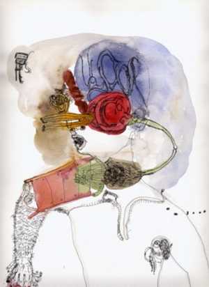 | Anna Barratt 17 May - 14 June Exhibition open: 11-5.30 Wednesday to Saturday, to 14 June The drawings and notebooks of Anna Barratt are in a long tradition of absurdist work. Meticulously and delicately executed in vibrant colours and fine pen lines, they are surreal tableaux � occasionally nightmarish, but with personal or autobiographic details that run through this new body of work. Although she draws on personal references, Anna talks of looking at the drawings objectively in order to work in this way rather than retreating to this private world: �Drawings are coming from tensions and isolation from being in a domestic setting, dealing with the here and now and the strange play world of my son. Then I switch to submersing myself in my work.� Anna has also produced simple animations or moving drawings for this exhibition: a crudely animated figure is drawn with the shimmering lines of early cartoon techniques; although apparently human, it has wagging tail � a sign of contentment, or agitation? Another piece, Cut in half, is made from pages of her notebook. Details within the drawn imagery emanate, develop and change, and the animation is looped, completing a process of transformation to restoration. The short loop and organic growth of these moving drawings cause them to become mesmeric and hypnotic, giving them the capacity to hold the viewer in a trance-like state. She drags up dream-like images from the subconscious with undercurrents of conflict and nightmares. Her work has been described as �hotwired to the unconscious�, and is greatly influenced by her travels in Mexico, Turkey and Istanbul. Her pieces have a �lo-fi� feel which gives them an emotional rawness and naivety, but which maintains an ambiguity that leaves interpretation with the viewer. Anna�s imagery unites the everyday with carnivalesque: animals and people are woven into a world that owes as much to celtic or medieval mythology as it does to contemporary life in all its messy and differentiated forms. It seems that the search for meaning or connection may be the essence of Anna�s work, not the discovery. �Snakes, worms and serpents come up in my work a lot. I identify with these creatures as renegades, symbols of revolution, creative process. While attending a wedding a few months ago in an old Gower church, the vicar at the service was giving a sanctimonious sermon about religion at home.... then I spotted a red snake on the stained glass next to me and it made me feel bloody great!� Anna Barratt: Born in Swansea, Anna Barratt studied in Southampton and Wimbledon printmaking school before returning to Wales to start a family. Previous exhibitions include �Stepfamily�, London and �Spectre vs Rector� at The Residence gallery London. Back in Wales she exhibited at the National Eisteddfod in 2006. G39 in 2008 � �Show One of Each� season and publication For g39�s 2008 programme we return to Show One of Each, our season of solo exhibitions, profiling some of the artists we consider to be the most innovative and relevant in Wales, while we actively support the progress of their careers as professional artists throughout the season and beyond. Previous artists: Neil McNally (16 February � 15 March) and Mike Murray (5 April � 3 May) A season publication will shortly be published, available from g39. | ||||