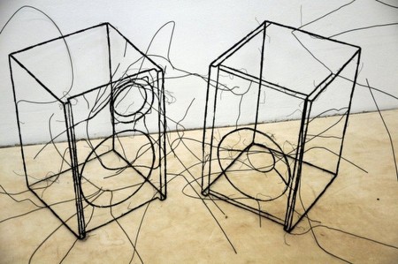Fritz Panzer, 2 Lautsprecherboxen, 2012 fil de fer 27x27x50 cm | |||