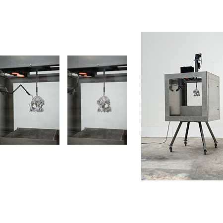 | BRAIN IN A VAT Galleri Tom Christoffersen presents Henrik Menn�s solo exhibition BRAIN IN A VAT - contemporary sculpture concentrating on process, machine and on the act of making sculpture in an expanded field. Fascinating, insisting and irritating are appropriate terms when talking about the three new machines by Henrik Menn�. Continuously, they produce drawings, tin objects or elaborate stone. The machine produced objects function as works in themselves but all though they are exhibited as such they are difficult to part from the actual fabrication as long as the works Drawing Machine, Stone and Stone and 5T turns the gallery space into an artist�s workshop. Being in the situation while the works are in the making characterizes the ephemeral relation between work and viewer, which earlier sculptures by Henrik Menn� also insist on. The fact that the artist - by inserting the machine - is distanced at least one step from the realisation of the work is also typical of Menn�s production. A last important issue is the fine balance between the controllable and chance, between the mechanical repetition and the unpredictable marginal variation, which theoretically makes the process infinite and prevents the objects from becoming identical. The exhibition catalogue contains texts by Robin Clark and Magnus Thor� Clausen. The catalogue is about the three new machines by Henrik Menn� and presents selected works from 2000-2007. By the invitation of Aura Kunstf�rening (The Art Association Aura) BRAIN IN A VAT will be shown at Krognoshuset (Lund/Sweden) in 2008 The exhibition and catalogue are supported by the Danish Arts Council. Henrik Menn� (1973) graduated from the Royal Academy of Fine Arts (Cph.) in 2002. Of upcoming and previous exhibitions the following can be mentioned Brain in a Vat|, Aura Art Association, Lund/ Sweden (2008), Sculpture in the Garden of Fairytales, tri-annual event in the public domain of Odense city (2008), Floor Show, Kunsthallen Brandts (2007) and the Autumn Exhibition, Charlottenborg Exhibition Hall (2006). Since 2004 Henrik Menn� has been a member of Decembristerne an artist� collaboration. He is also a member of Kubik, a collaboration of artists concentrating on contemporary sculpture. | ||||