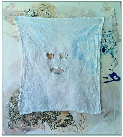 Carter’s work can be described as a multi-media investigation into the shifting nature of the self. Gaining critical recognition in the past decade with his “anonymous” busts and films such as Erased James Franco (2008), Carter is conceptually preoccupied with issues pertaining to identity, specifically the power and possibility of anonymity. In his own words: “Anonymity is useful in that it allows you to explore/be/try/risk/portray different facets of one’s life and interests without being fully responsible for the outcome.” This perspective renders the classical beauty of Carter’s latest works, on view here, insightfully pertinent to this particular historical moment, a time when the melded social, political and technological currents of the postmodern age inspire a state of uncertainty and searching, on both a personal and global level. Sensually belabored with painting and drawing, paper and fabric, these textured canvases present poetic compositions that hover liminally between abstraction and figuration, resulting in an evocative, atmospheric aesthetic realm where faces and forms coalesce into a vision at once familiar and strange. A new element of Carter’s work, the sewn masks, contribute a layer of uncanny complexity, evoking laden and contrasting themes of memorial, mortality, presence and absence. Through Carter’s lens, the current human condition – fleeting, transient, multivalent – is profoundly legible.