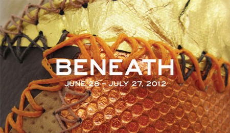 "BENEATH" centers around the topics of body, skin and surface and explores the multi-faceted relationship between art and the human body. Figurative elements appear next to abstract forms, a geometric concrete cube serves as a vessel for a plant while suspended metal chains relate to a leather object reminiscent of human sexual fetish. Materials at play are copper, latex, iron powder, silk, wax, velvet, silver, leather, concrete and chrome. The intention of combining those heterogeneous works grows out of a curiosity towards contemporary perspectives on the three-part nexus of content, objectness and surface as a potential conduit between them.