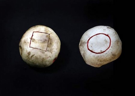 “In her experimental setups, Theresa Schubert condenses the most simple organisms to highly complex philosophical questions. In the artistic research project Growing Geometries I – tattooing mushrooms, fungi generate their growth by processing organic material. Together with the treatment of the mushroom with tattoo needles, their natural growth creates a closer proximity to that of mankind than to that of plants. A natural phenomenon is translated into a moment of critical analysis of processes of growth with the simplest of means. Theresa Schubert's tattooed mushroom are fruits of a deeper lying mesh whose growth can take any shape or form based on devitalized organic material causing revitalization.” (Kerstin Godschalk, curator HB55 Kulturfabrik Berlin)
